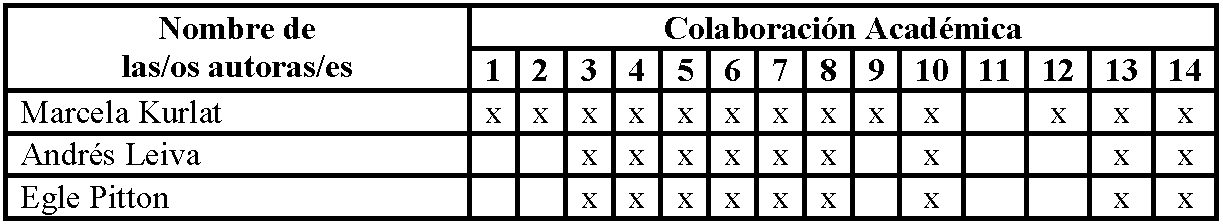1- Administración del proyecto; 2- Adquisición de fondos; 3- Análisis formal; 4- Conceptualización; 5- Curaduría de datos; 6- Escritura – revisión/edición; 7- Investigación; 8- Metodología; 9- Recursos; 10- Redacción – borrador original; 11- Software; 12- Supervisión; 13- Validación; 14- Visualización.