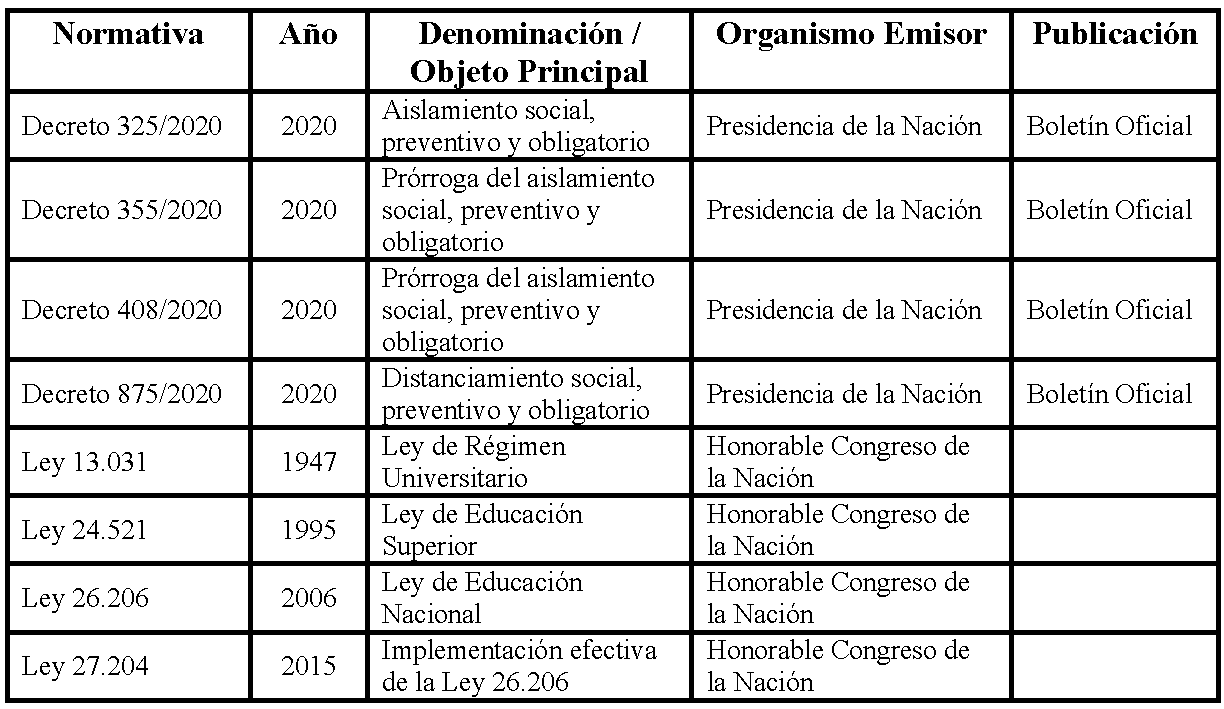 A continuación, se presenta un cuadro que resume las leyes y decretos de necesidad y urgencia consultados.