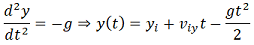 Analicemos más en detalle este problema desde la perspectiva de la matemática continua. Cuando un objeto se encuentra únicamente bajo la influencia de la fuerza gravitatoria, por segunda ley de Newton, se cumple que . En consecuencia, la posición en un eje horizontal y en uno vertical está determinada por las ecuaciones