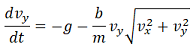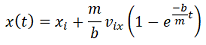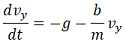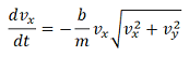 donde es una constante que depende de la forma del objeto y la masa del objeto. Resolviendo estas ecuaciones diferenciales se puede encontrar la expresión analítica para conocer la posición en cada instante de tiempo,