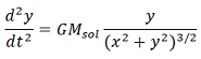 Las ecuaciones diferenciales que rigen este movimiento, considerando que el Sol se encuentra en la posición , son